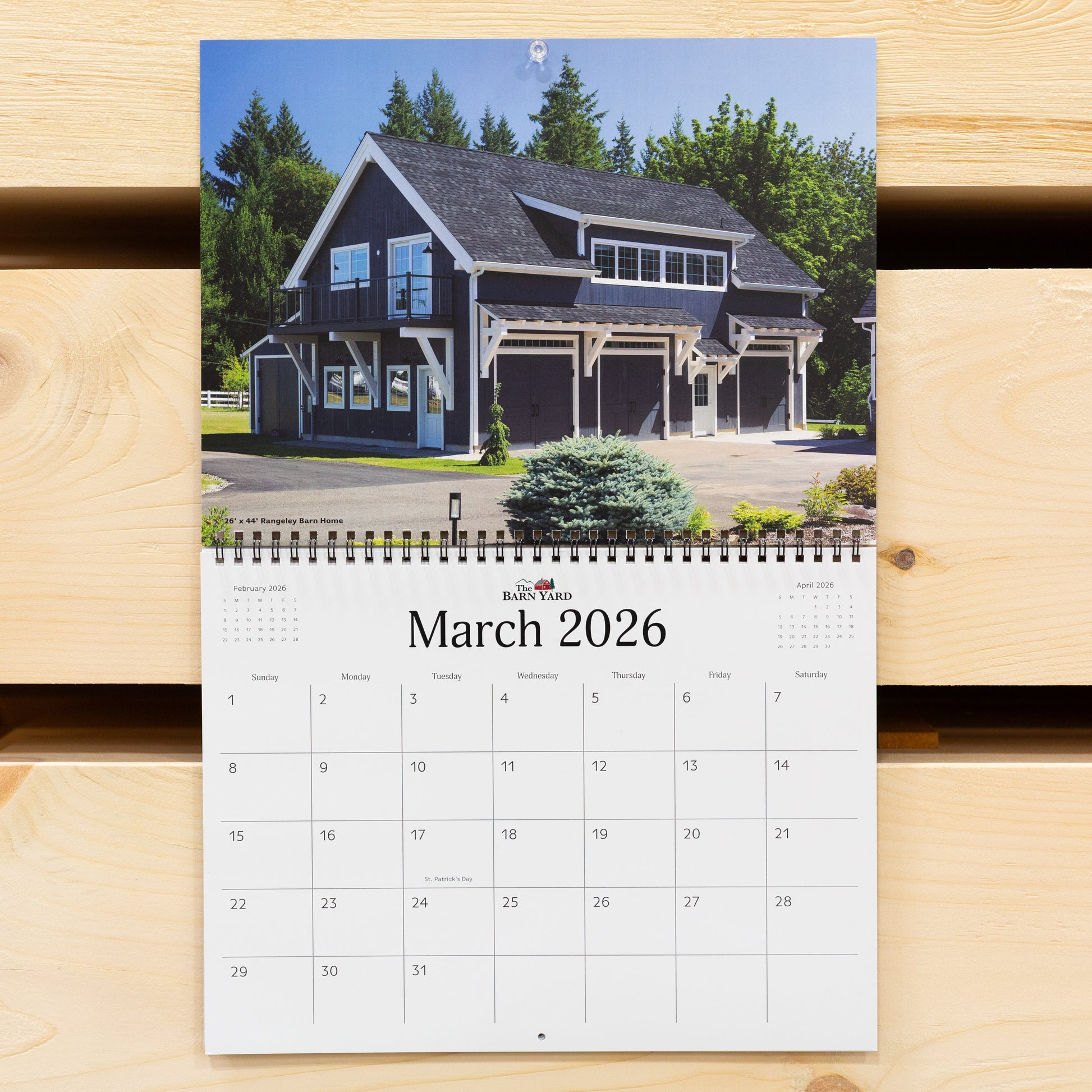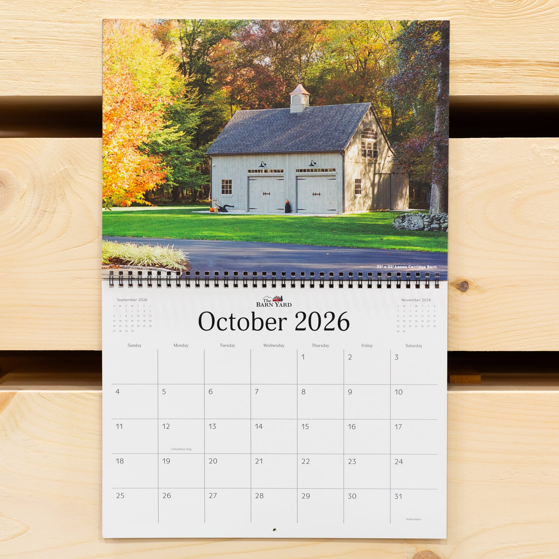 Back by popular demand! The Barn Yard's third annual calendar is now available! Proudly display this large 12x9 wall calendar in your home, office, or shop and be inspired to build your own timber frame structure. Made of thick cardstock and spiral bound, this 2026 calendar features a new photo each month of our best buildings. The good size and clean design allows room for you to jot down important events on the calendar...like order that post & beam barn from The Barn Yard that you've been dreaming about all year!
